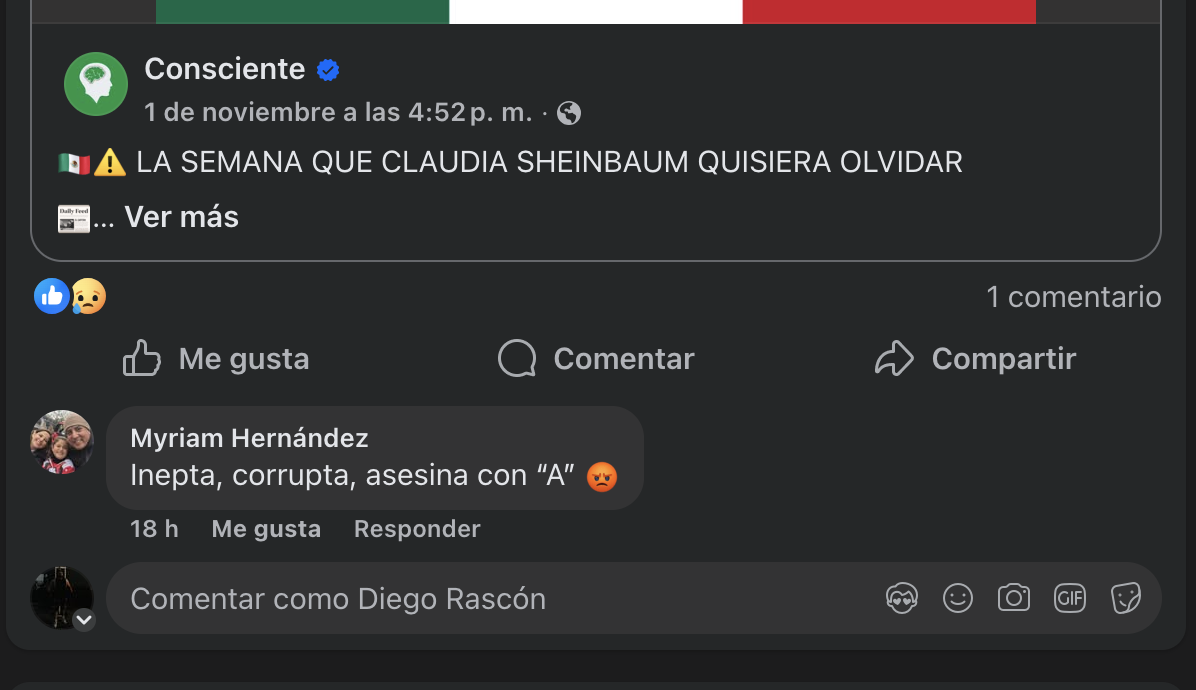 Lo que llamó la atención que la ex magistrada ‘con A», Myriam Hernández, contestó dicha publicación llamando «inepta, corrupta y asesina con A» a la presidenta de México, Claudia Sheinbaum.